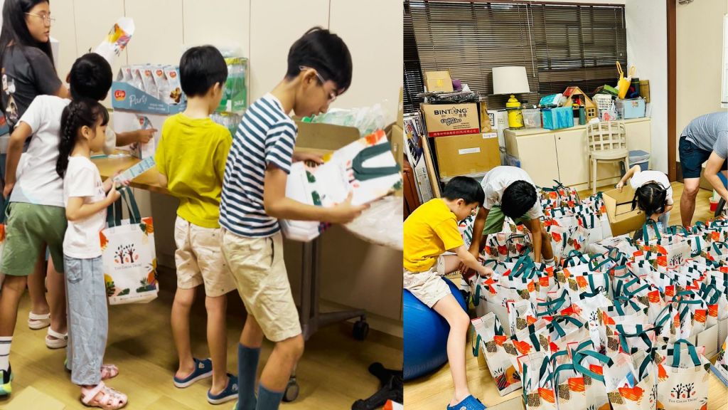 On the actual day, the kids arrived early, long before the first senior came in. They carried in the sponsored items, cleared a space in the office, and turned it into a mini production line. Toothbrushes, Kopiko candies, Gem biscuits, and chocolate wafers moved down the table in a neat rhythm, packed systematically bag by bag. Calm, focused, and surprisingly efficient.